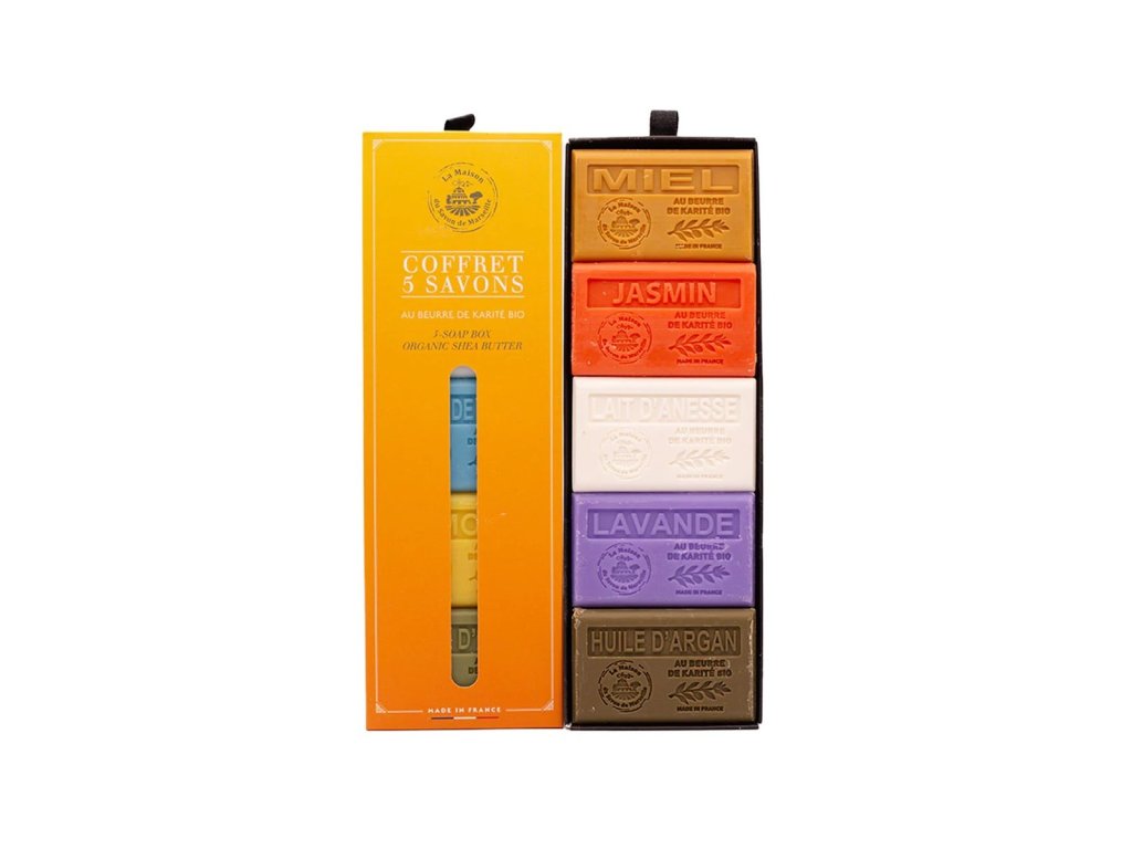 La Masion Dárkový set 5 mýdel s bambuckým máslem (med, jasmín,oslí mléko,levandule, argán)