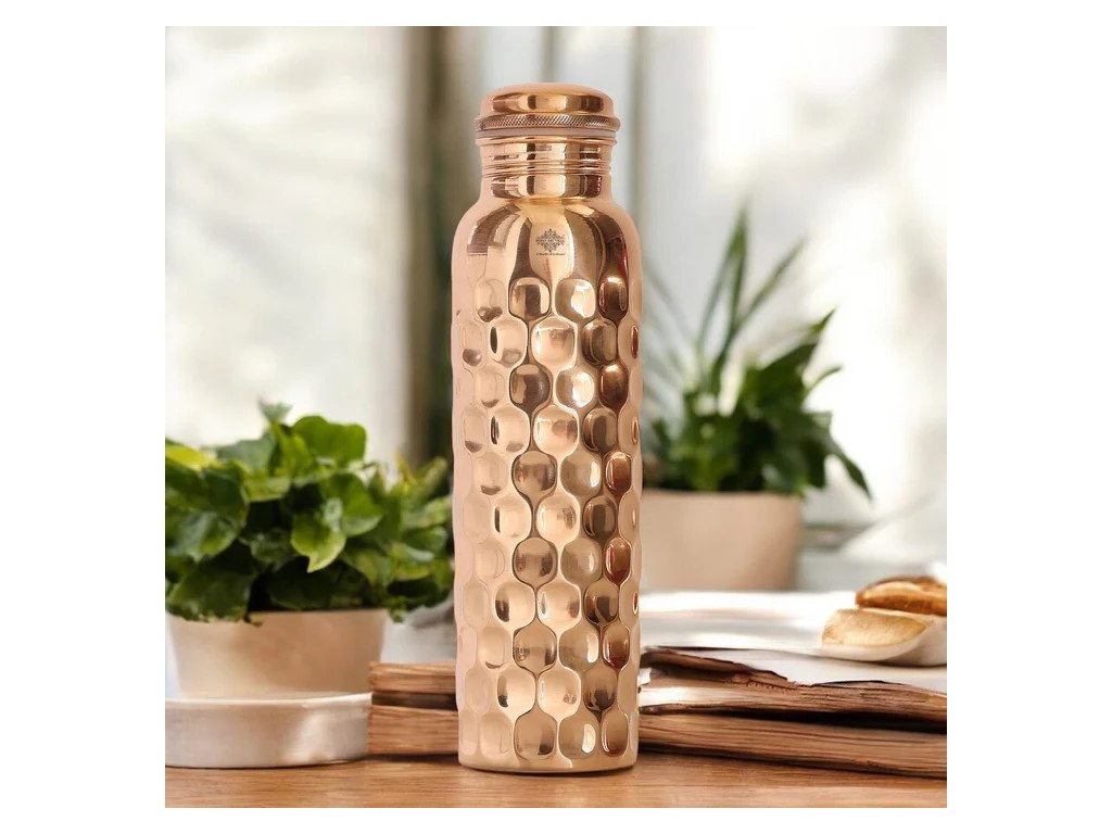 Ručně vyrobená láhev z čisté mědi není jen nádobou na vaše nápoje; je to směs zdraví, krásy a tradice. Její jedinečný design ve spojení se zdravotními výhodami mědi z ní činí nepostradatelnou součást zdravého a stylového životního stylu. Láhev je dodávána s bezpečným, nepropustným víčkem, takže je ideální pro nošení v taškách bez obav z rozlití. Její design zajišťuje, že vaše nápoje zůstanou čerstvé po celý den.