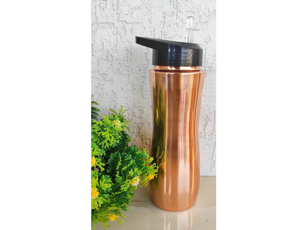 Měděná láhev lesklá nepropustná s brčkem 750 ml