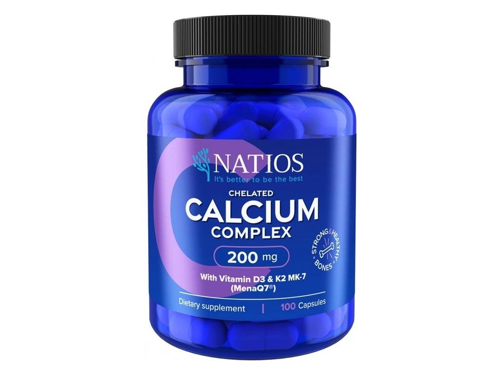 NATIOS Chelated Calcium Complex, Vápník s vitamíny D3 a K2 MK-7, 200 mg, 100 kapslí