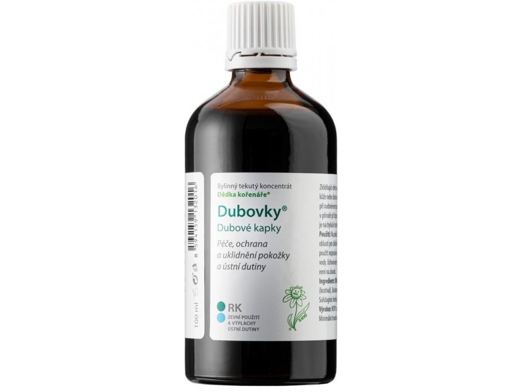 - Dubovky - dubové kapky obsahují extrakty z bylin, které mají stahující, mírně zánětlivý a dezinfekční účinek.
