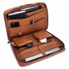Elegantní aktovka z pravé kůže v barvě karamelu s praktickým úložným prostorem.